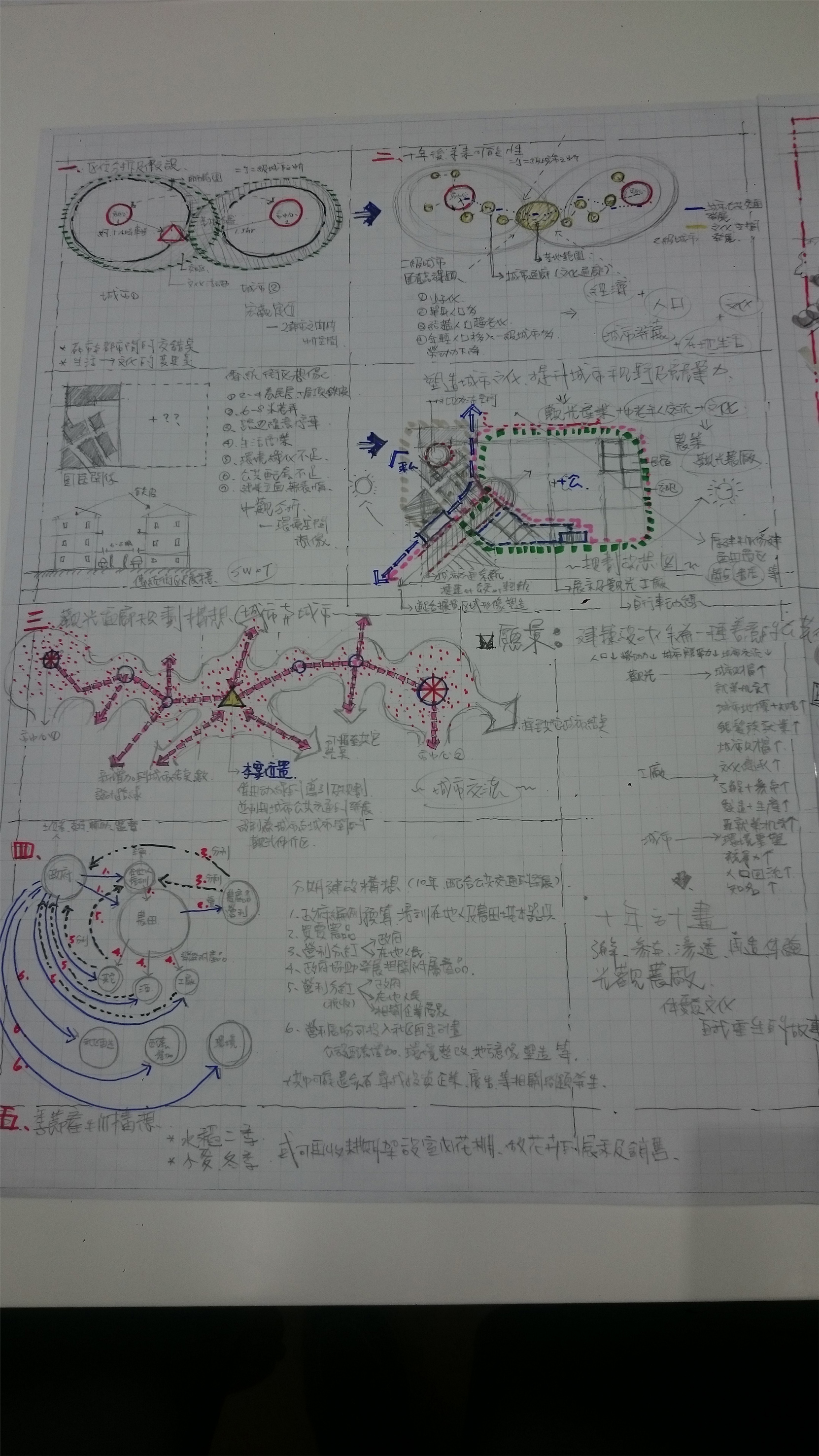 假設了當地人口解構年齡偏老 勞動人口外移 以10年後為目標設想建設地方 發展城市 做為城市與城市之間的文化走廊中的其中一點 以光觀的形態串連 也假設了公共交通慢慢發展至此 剛開始政府輔助出資投入產業發展以及當地人口培訓 然後收益 然後再協助投入發展相關附屬品產業 再收益 然後改造當地環境 景觀 建物整體營造等循環