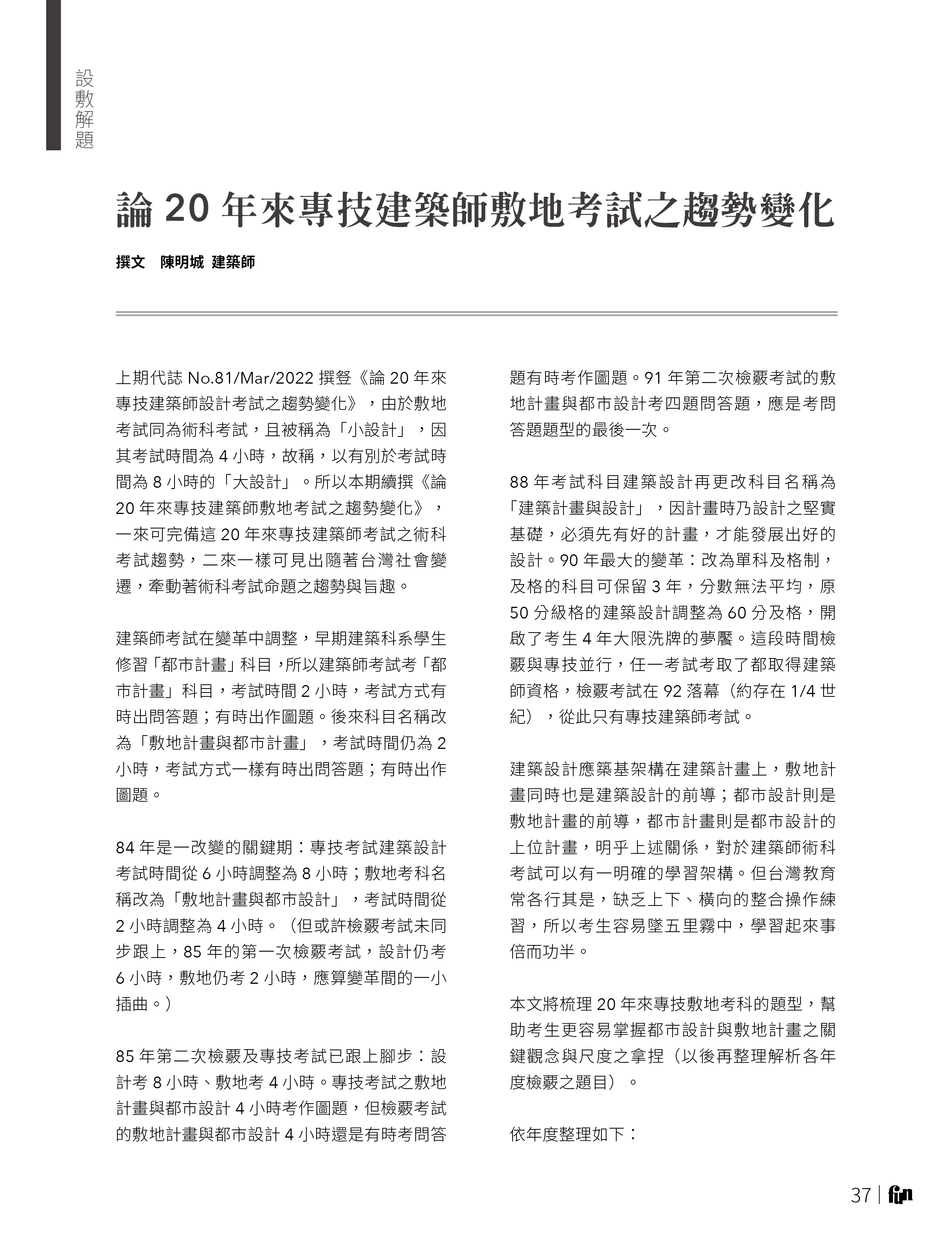 【No.81】論20年來專技建築師設計考試之趨勢變化