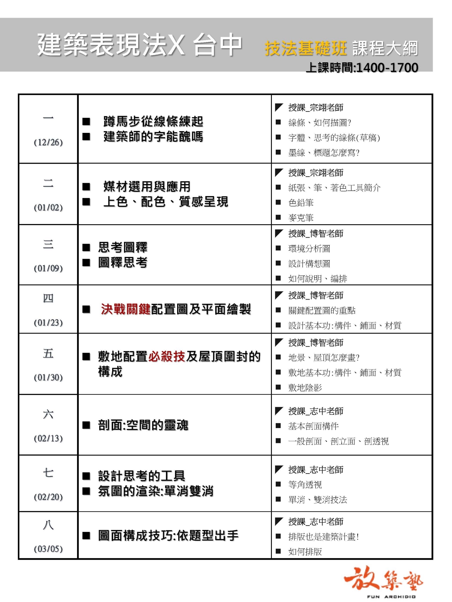 台北早鳥班課表