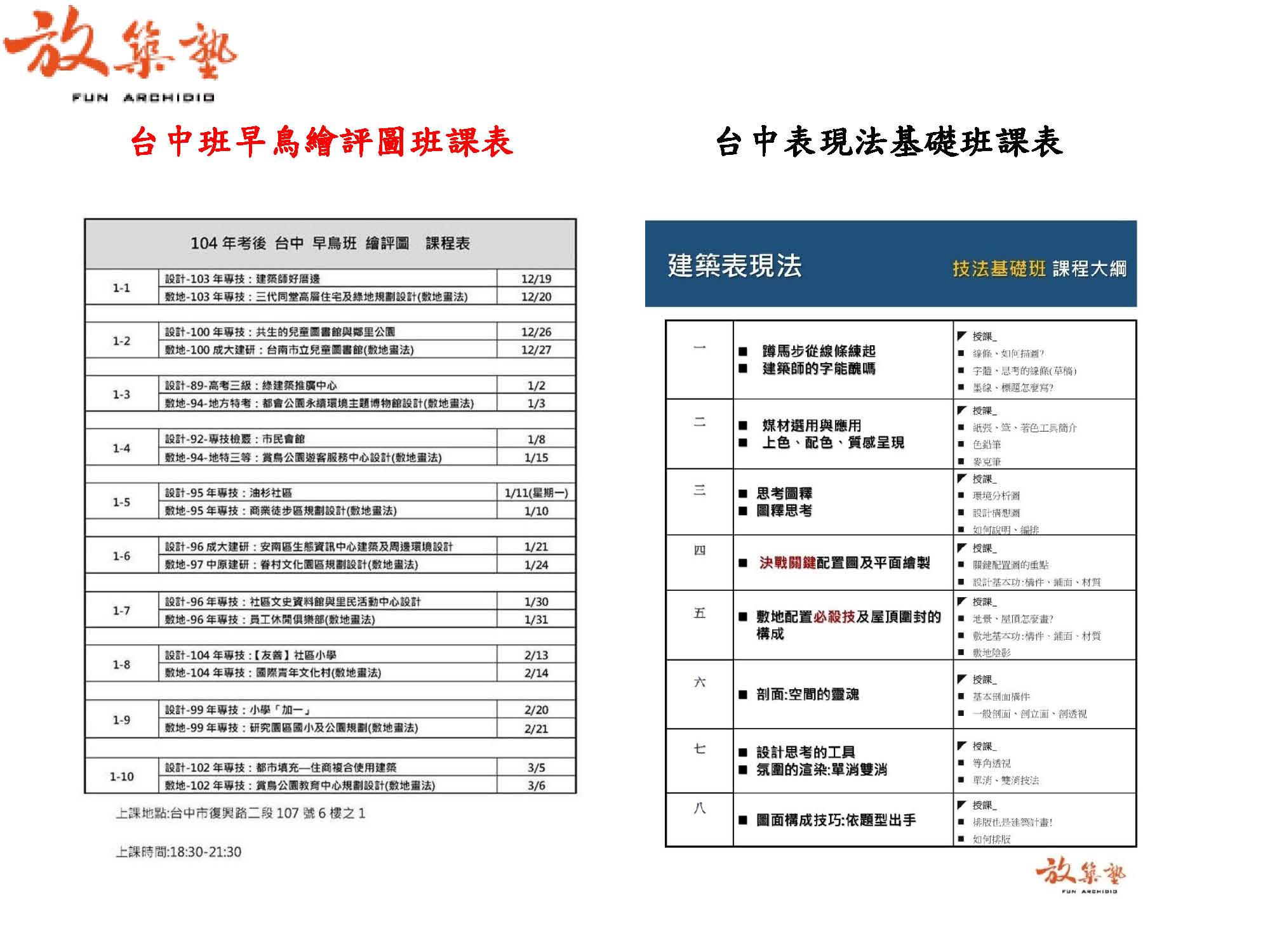 台中早鳥班課表