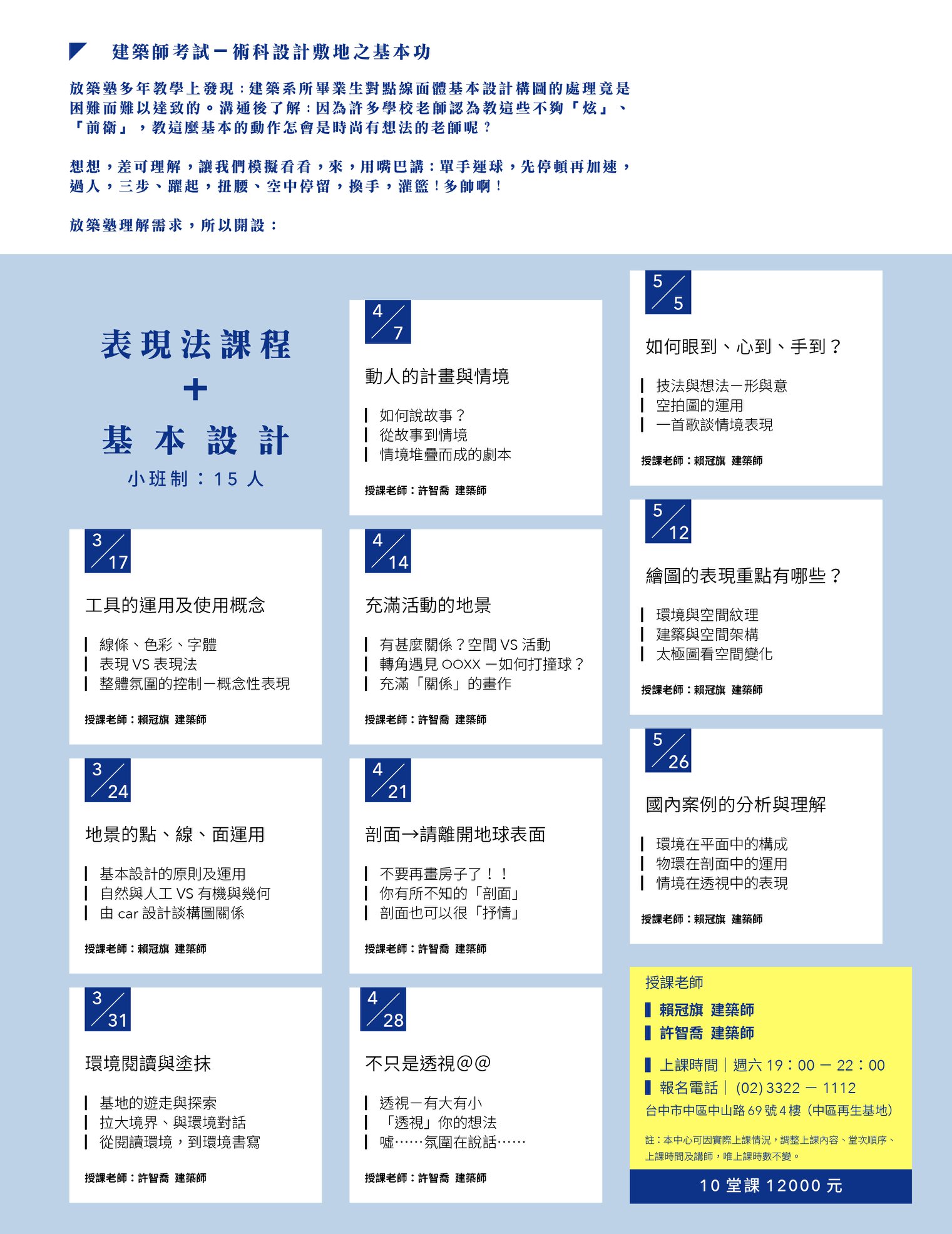 ***早幾年表現法、基本設計常喜歡以我上架構的方式上課,因此無法照顧到學生在表現法、基本設計上的手上功夫要求。
