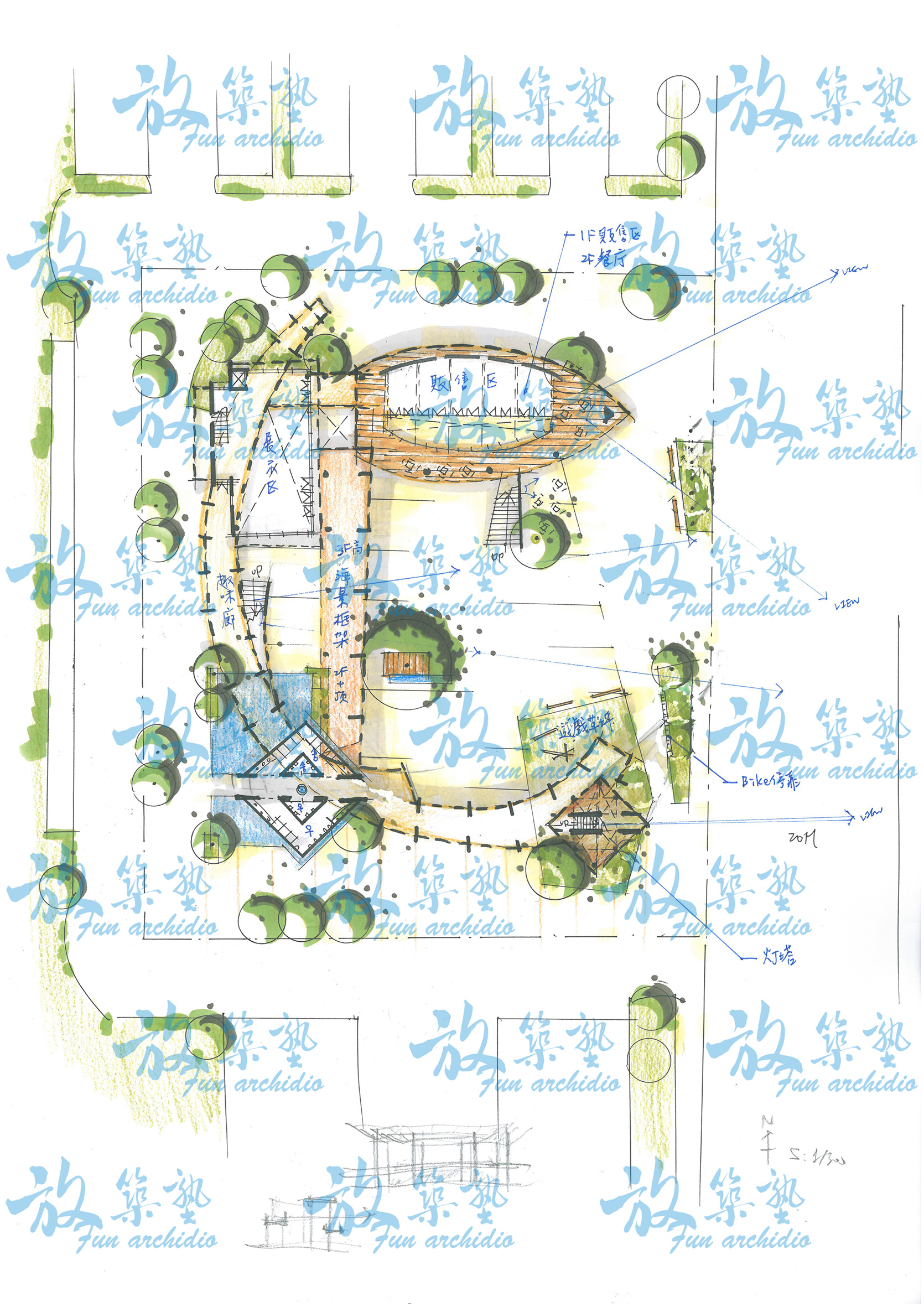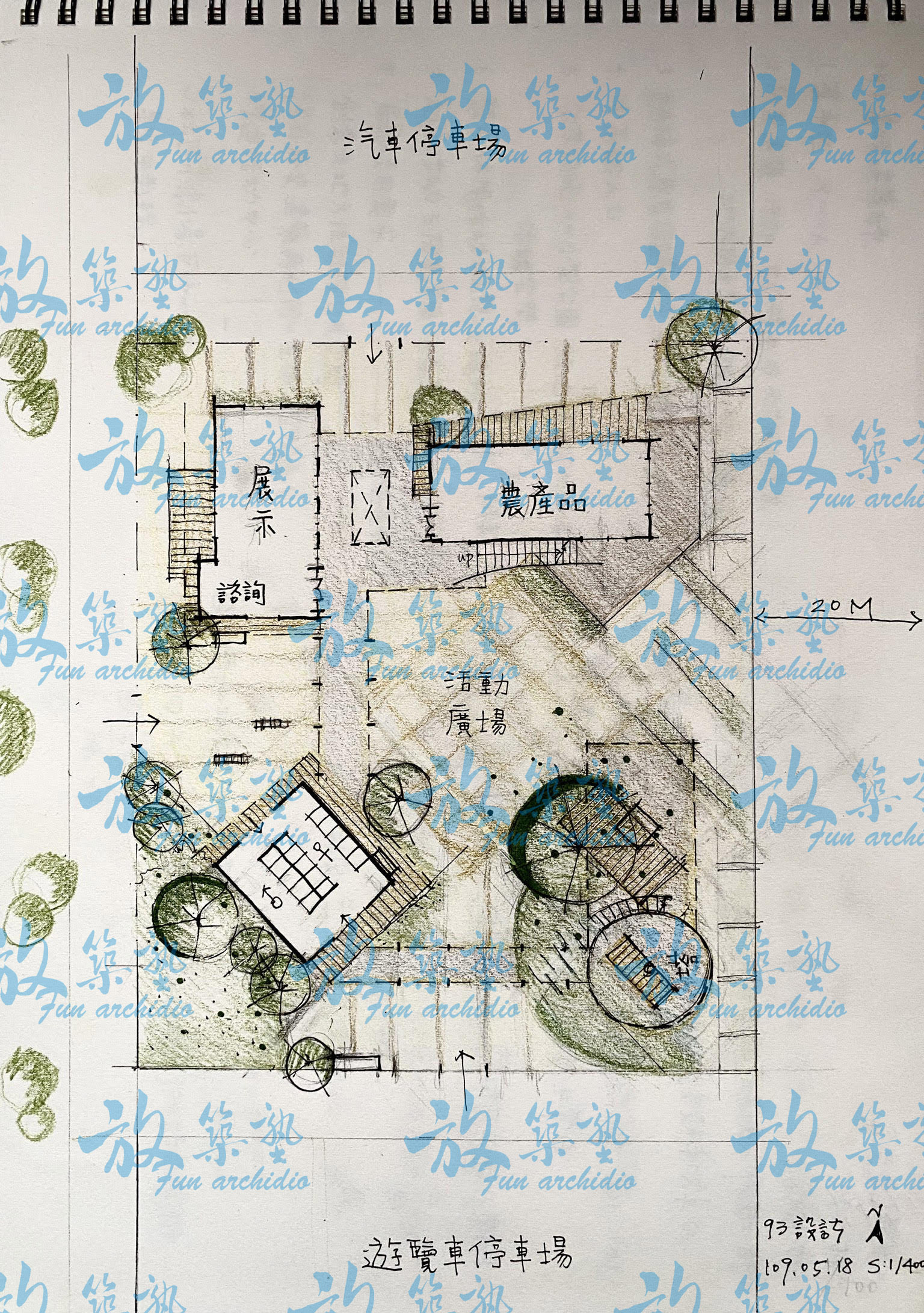 很開心今年能在放築塾學習,這一年的課程非常豐富,雖然我真的能輸入的很有限,最近再次翻看以前和現在的圖,發現了我從一個只會畫圈圈找開放空間,再在空的地方放盒子的圖面,在課堂上也被老師罵過「只有在處理機能而已」,到現在漸漸的會去思考您最常在說的空間情境、配置架構、以及願景概念。