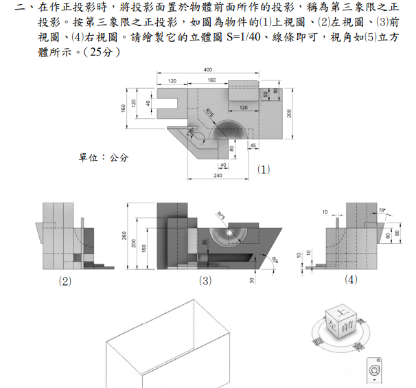 、進階三視圖轉立體圖、施工大樣圖,希望可以在板上求得高手協助,以下是參考題型▼