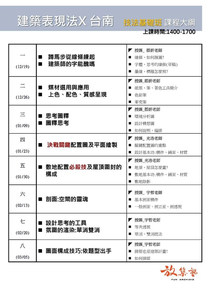 放築塾-課程~有三-架構課程,繪評圖課程、表現法課程~~