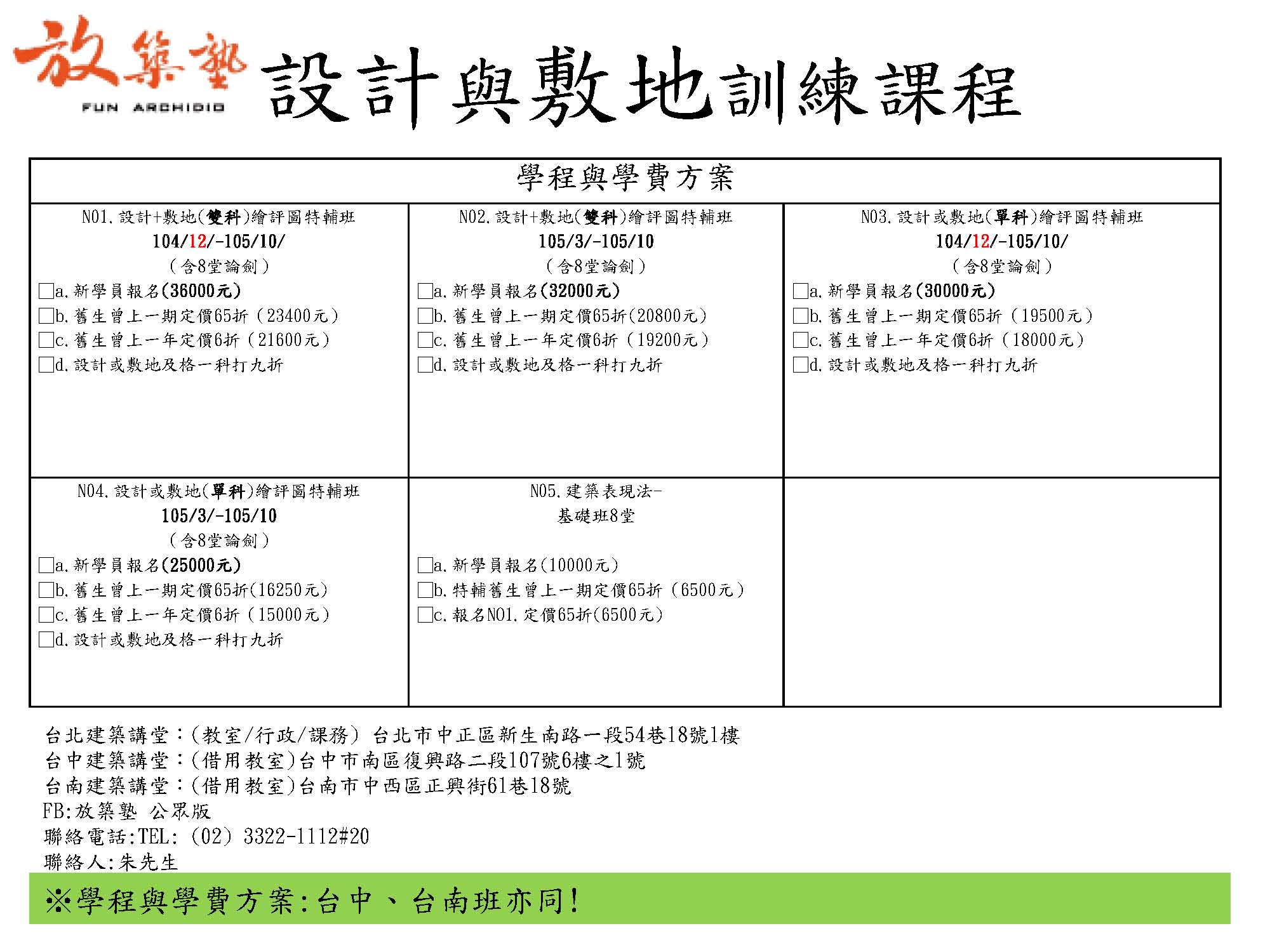 105年度-放築塾-專技建築師、公務員高考、建築設計與敷地課程~開跑囉!!