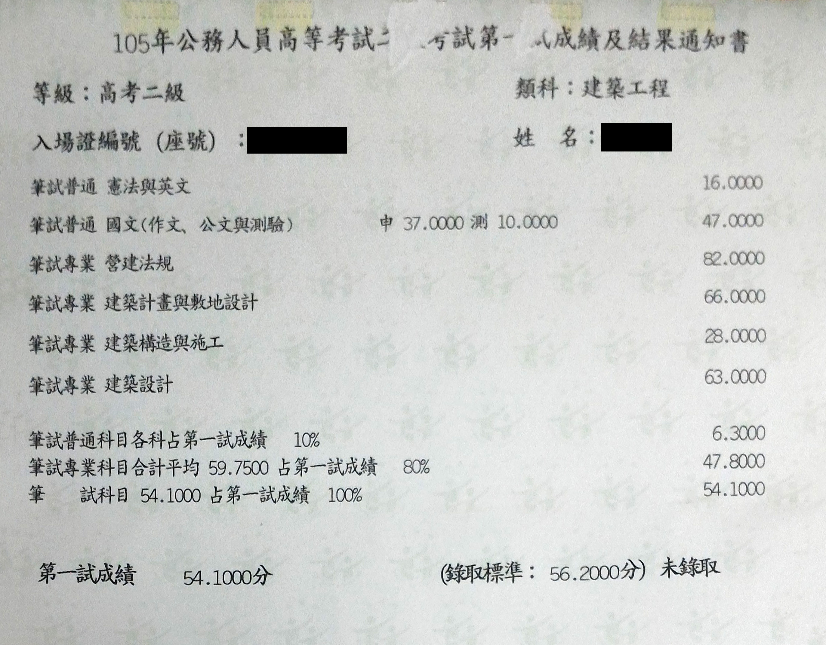 收到高考二級的成績單,看到設計成績,想跟你分享,我的喜悅,雖然未達口試錄取標準,但我的設計成績,竟有63分(以前未曾考過50分),真的很高興,謝謝老師的教導,我會繼續加油的,期盼明年能設計敷地一起過關(去年設計,敷地都沒過,今年來不及了)。~OO