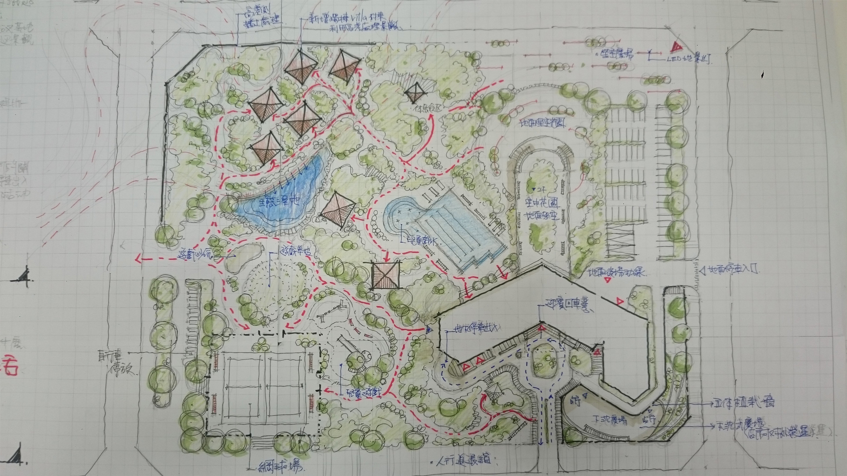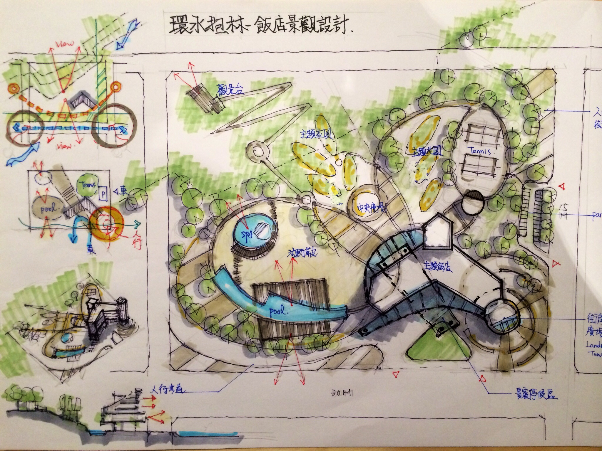 1.我喜欢你的景观画法 很自然 但在下笔前 是否要先想一下原因跟说法 找找轴线 边界处理 等等