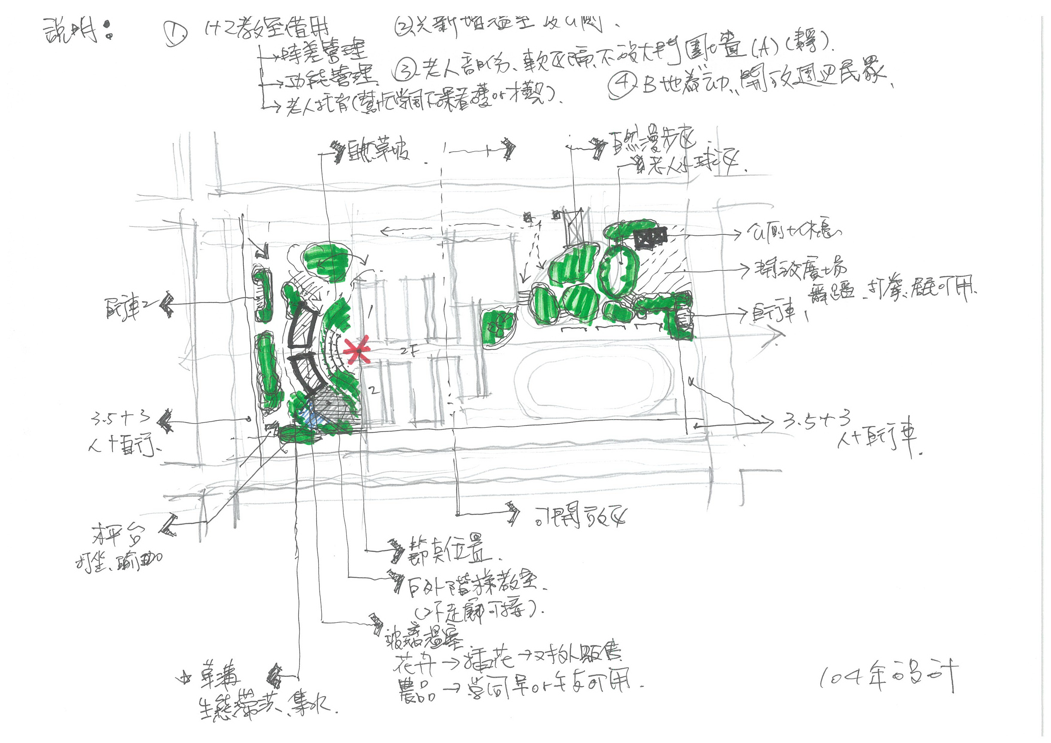 但這敘述與公園或開放空間常見活動有違,建議不妨平日多觀察,少些想當然耳。對考過設計會有幫助的!
