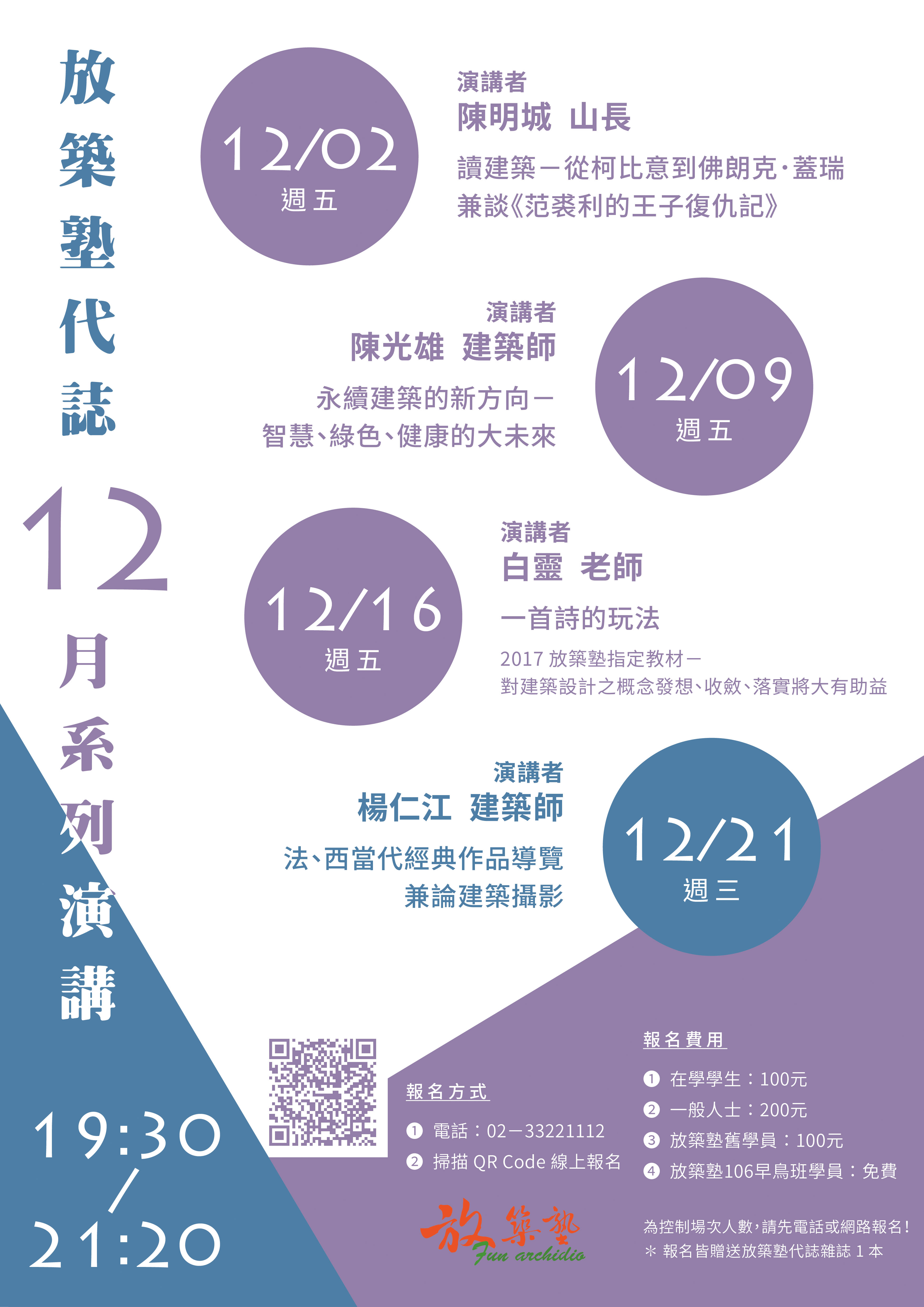 12月系列演講:星期五晚19.30~21.40