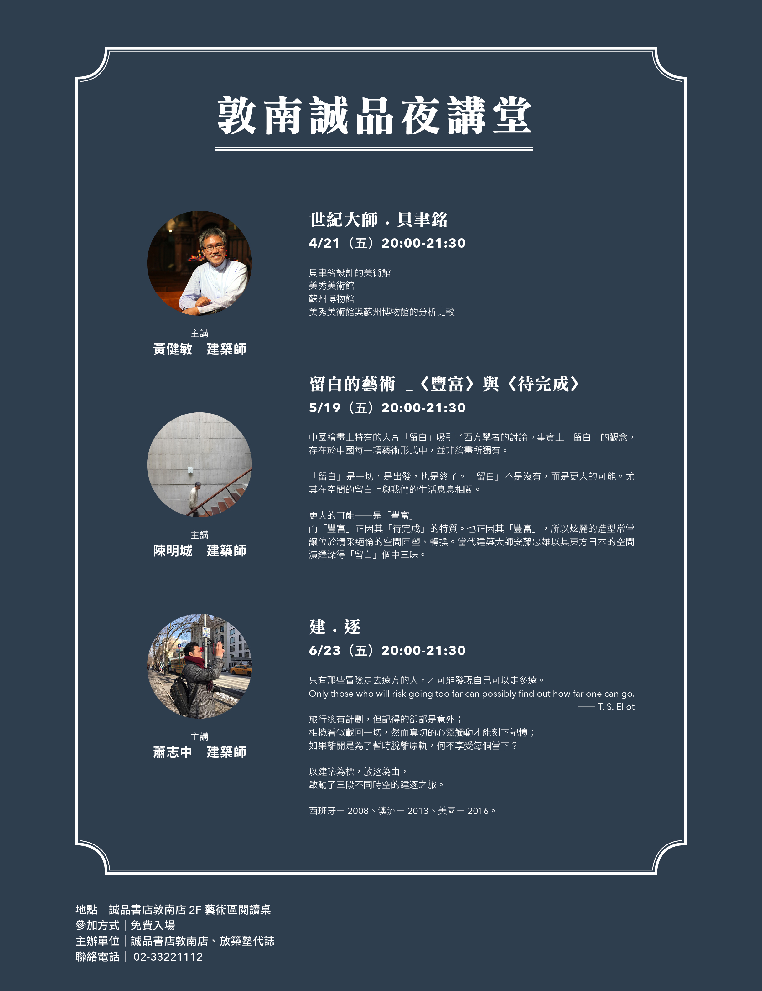 05/19(星五)_陳明城建築師:《留白的藝術》--〈豐富〉與〈待完成〉